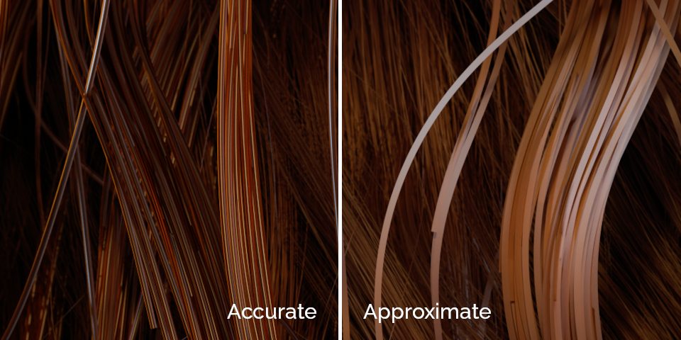 Another new mode, adaptive, uses the accurate mode for close-ups, and approximate for more distant hairs, reducing the hit to render time while still improving visual quality.