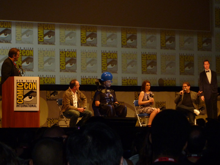 The panel begins with director Tom McGrath being called on stage and explaining the movie. Suddenly, Will Ferrell walks on stage in a Megamind costume, to his surprise being the only one dressed up. He figured since it was Comic Con everyone would have a costume on. I could not tell you how funny this was, and it only got funnier as Tina Fey and Jonah Hill entered the stage. Lastly the director introduced the film’s final star, Bradd Pitt! The crowd goes nuts only to see Will Ferrell walk out on stage with a cardboard cut out of Pitt wearing a tuxedo. With Angelina at the con for Salt, Brad had to stay home to take care of the kids. This was too funny since we all felt like we fell for a really well played prank. The cardboard cutout stayed on stage the entire time, being molested by Tina Fey most of the time.
