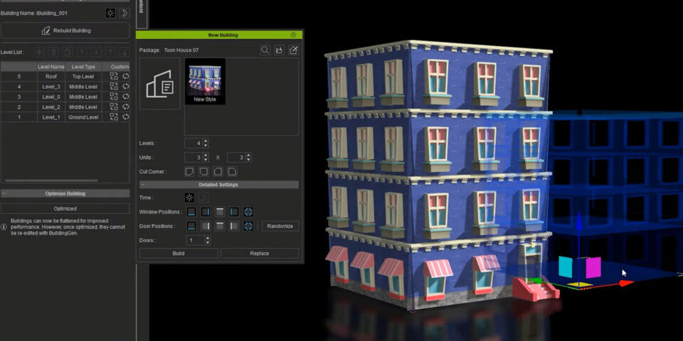 New plugin generates procedural 3D buildings from modular parts, directly inside the real-time animation software.