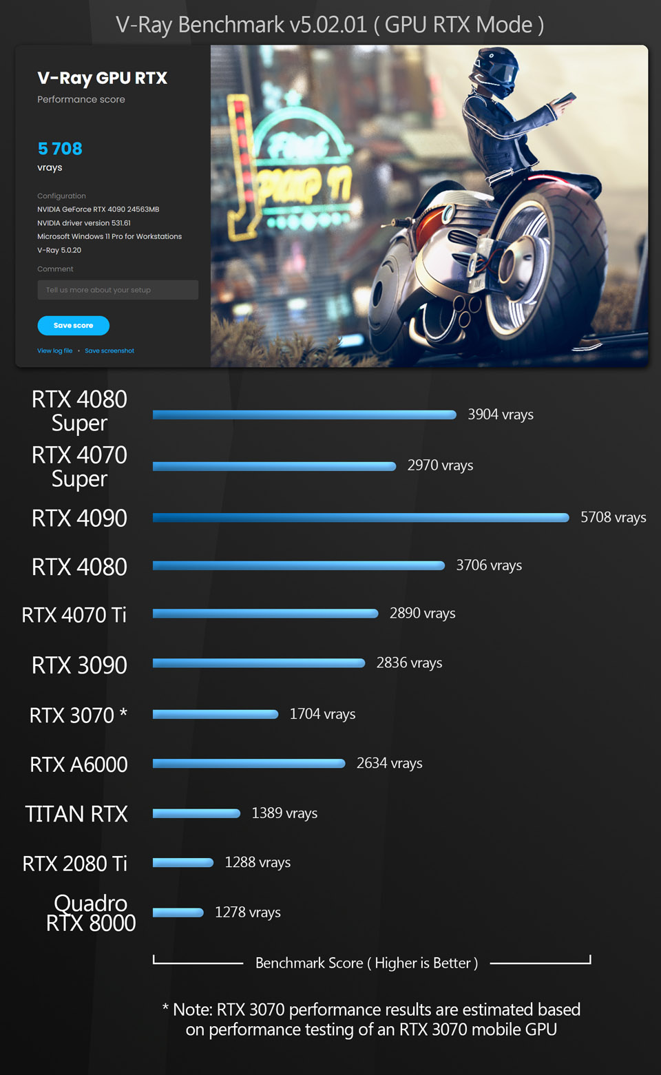 In order to take advantage of the RT cores, software has to access them through a graphics API: in the case of the applications featured in this review, either DXR (DirectX Raytracing), used in Unreal Engine, or NVIDIA’s OptiX, used in most offline renderers.