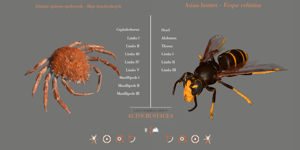 You can also view two species side by side to compare the layouts of the body parts in different groups of arthropods.