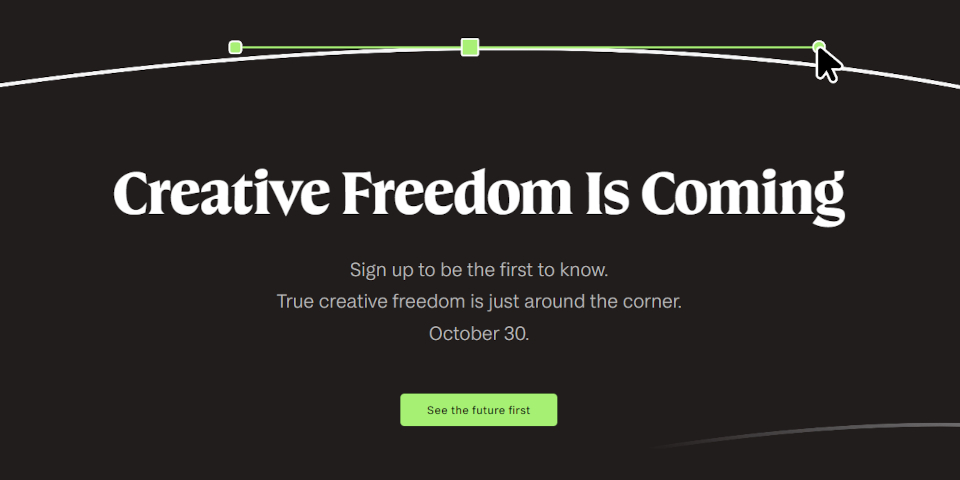 A notice on the homepage of the Affinity website reads, enigmatically, “Creative freedom is coming”, with the date “October 30” beneath it.