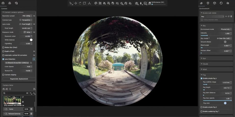 Real-time ray tracing renderer for exploring large V-Ray scenes gets OCIO color management, DLSS 4, and new lens distortion system.