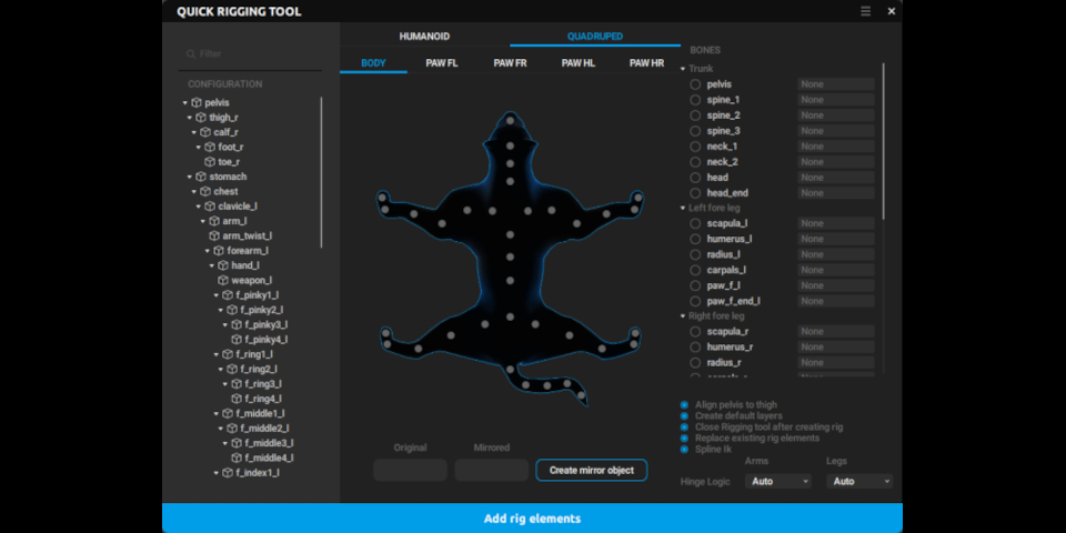 Another major change in Cascadeur 2025.3 is the option to rig quadrupeds, as well as bipeds.