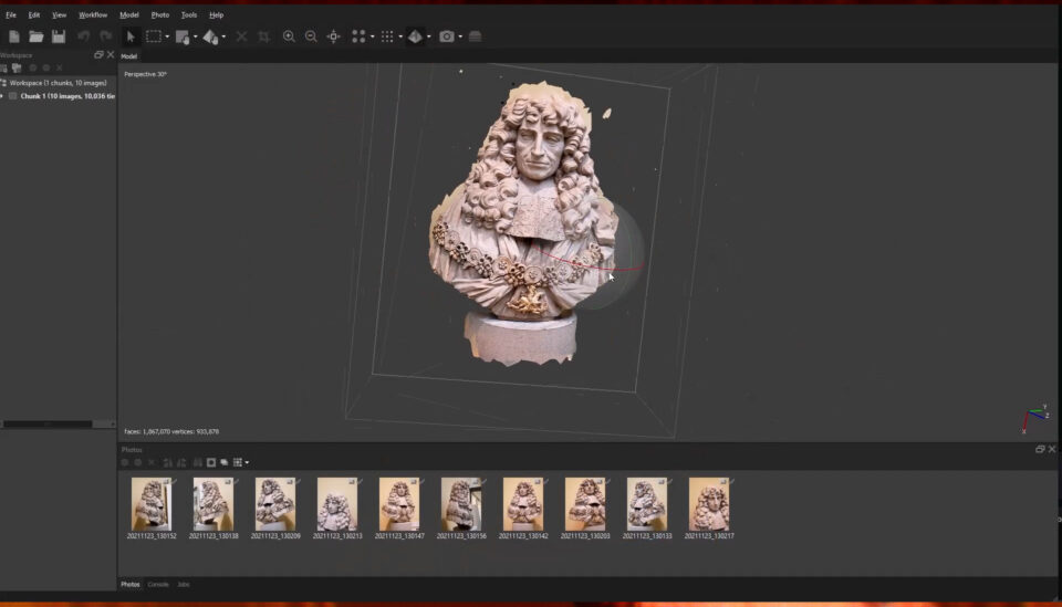 Michael began by creating a 3D model of the bust of Prince Rupert from source photos taken in the British Museum using photogrammetry software Metashape.