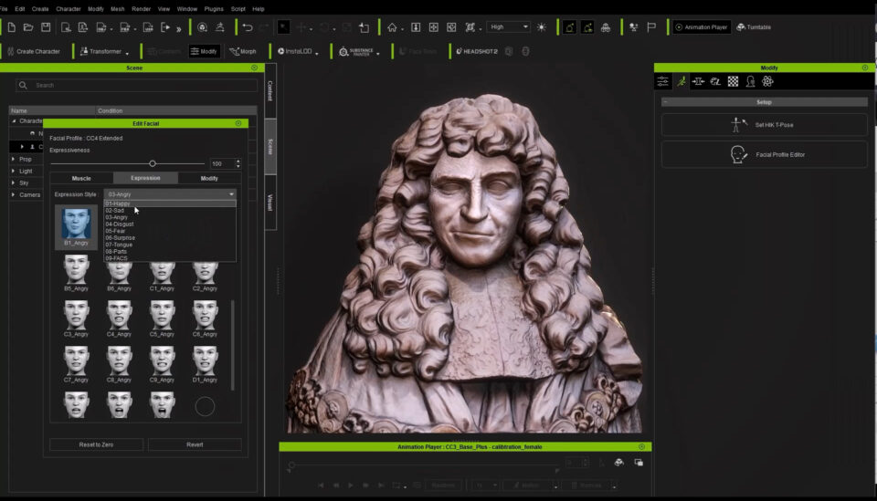 Michael used the new Mesh Workflow features in Headshot 2.0 to automatically wrap the statue’s face to Character Creator’s animation-ready topology.