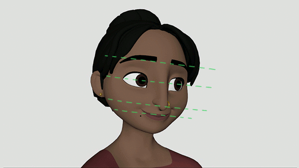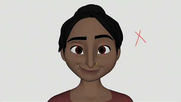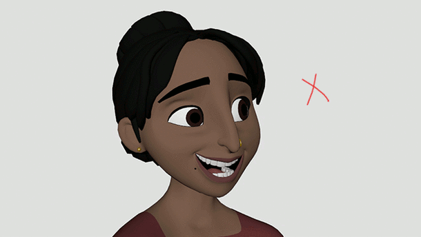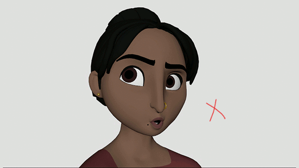 Don’t let the left side of your character’s facial pose mirror the right side exactly: in reality, facial poses are never perfectly symmetrical.