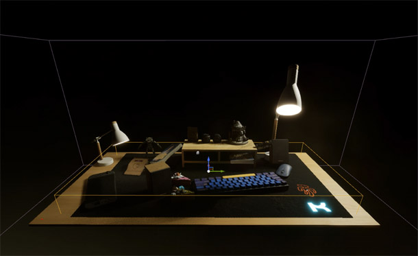 Now, I’m no game dev, so creating an open-world RPG was most definitely off the plate. I decided to go for a simple 3D platformer, and to include only 3D scanned assets. My desk seemed like a good candidate environment, with lots of obstacles like a keyboard, a mouse, a computer stand, pens, books and so on.